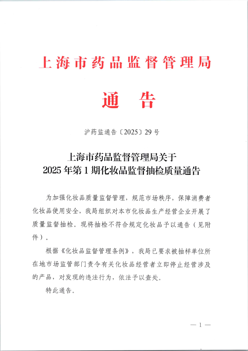 918博天堂-博天堂娱乐关于2025年第1期化妆品监督抽检质量通告